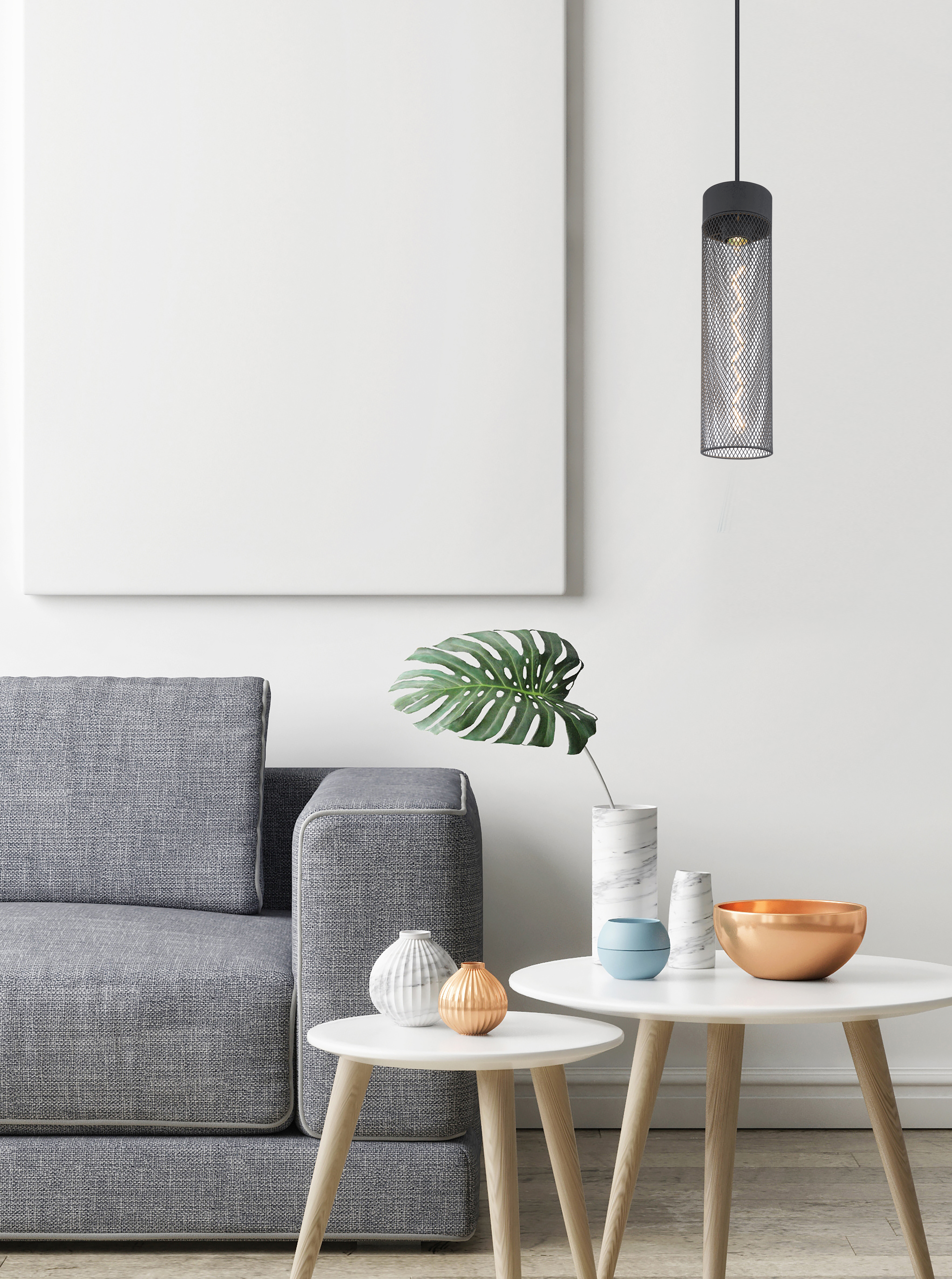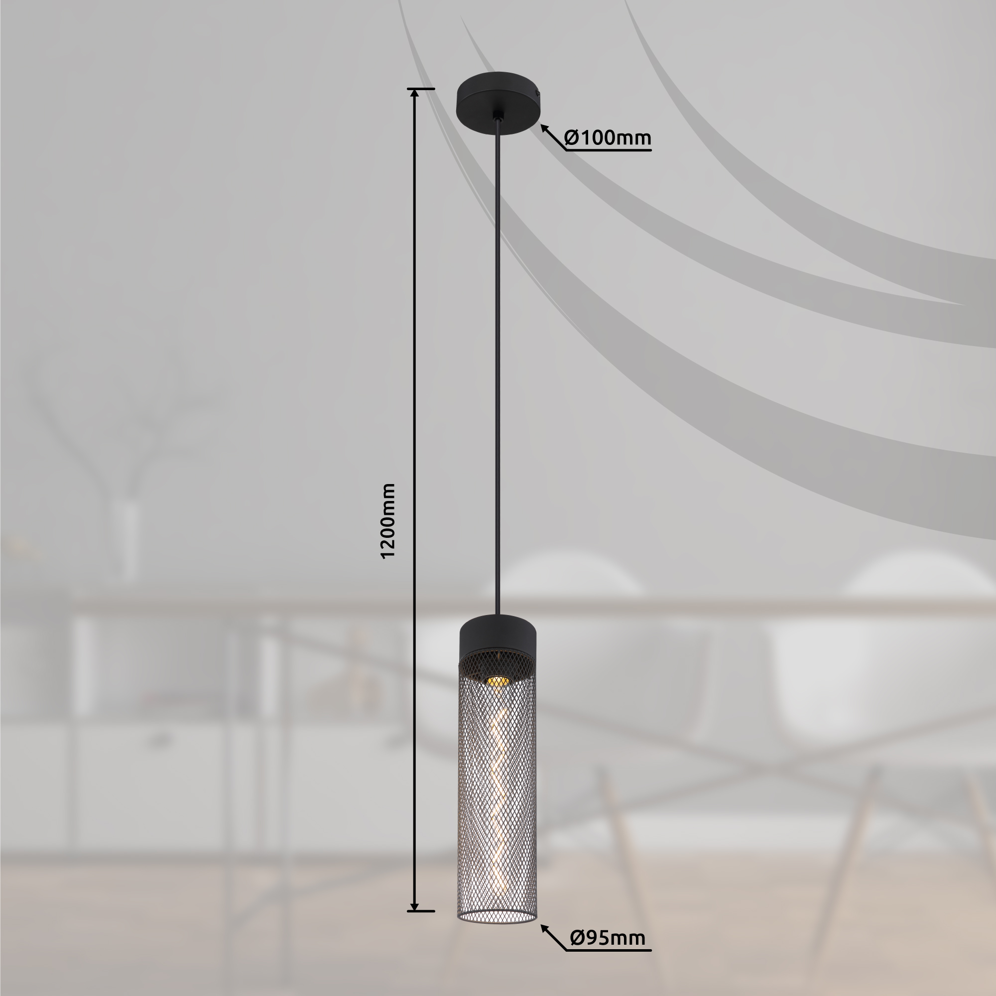 Questa lampada a sospensione della serie HANS è un'elegante aggiunta ai tuoi interni. Un cavo nero sporge da un montaggio rotondo a soffitto, che termina con una presa E27 ed è dotato di una rete metallica cilindrica. La presa E27 offre la possibilità di determinare il colore della luce e la luminosità fino a una potenza massima di 40 watt. Inoltre, è possibile regolare l'altezza della lampada a sospensione fino a 120 cm durante l'installazione. Con altri modelli della stessa serie, puoi creare un ambiente elegante nei tuoi interni e completare il quadro generale.