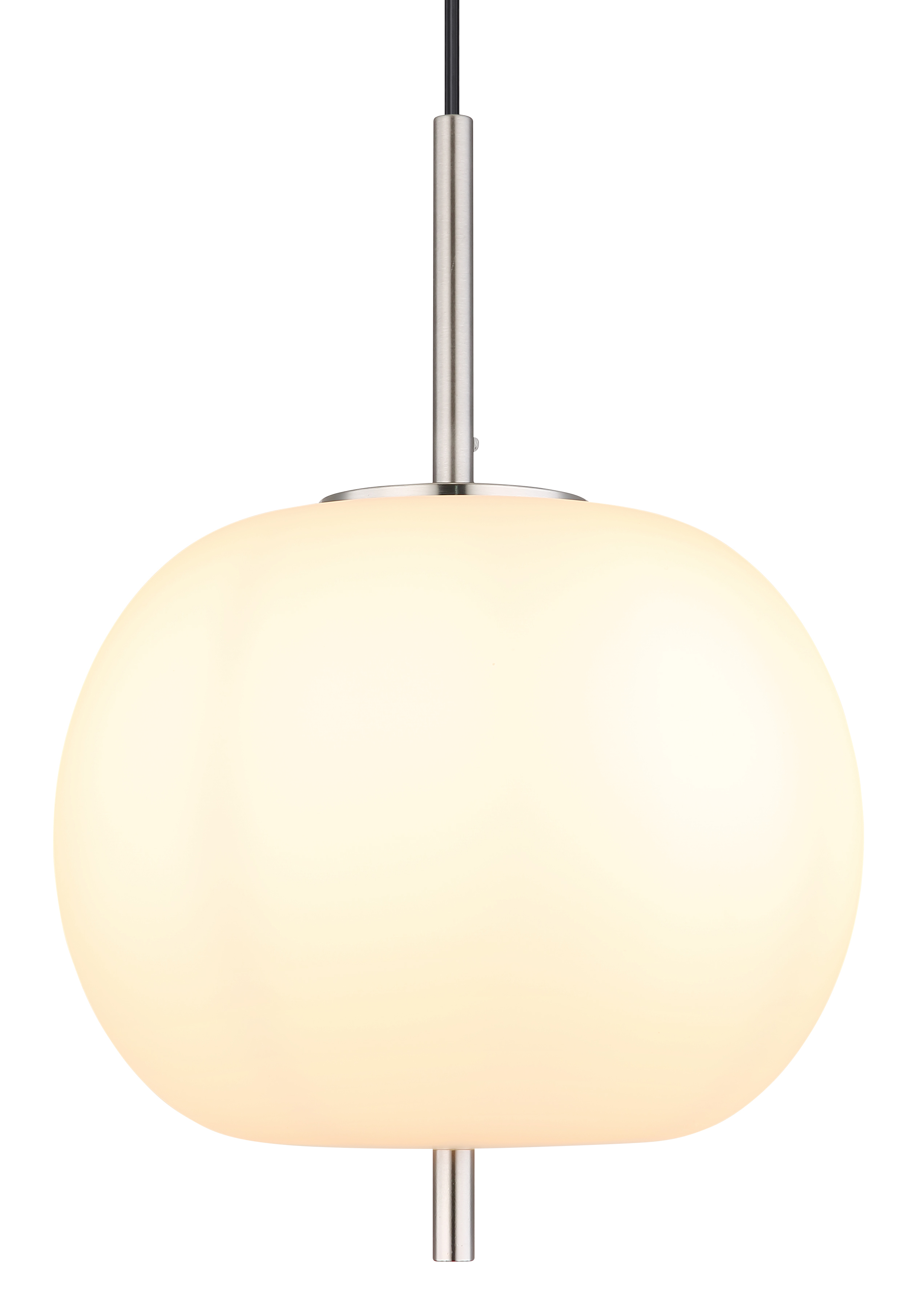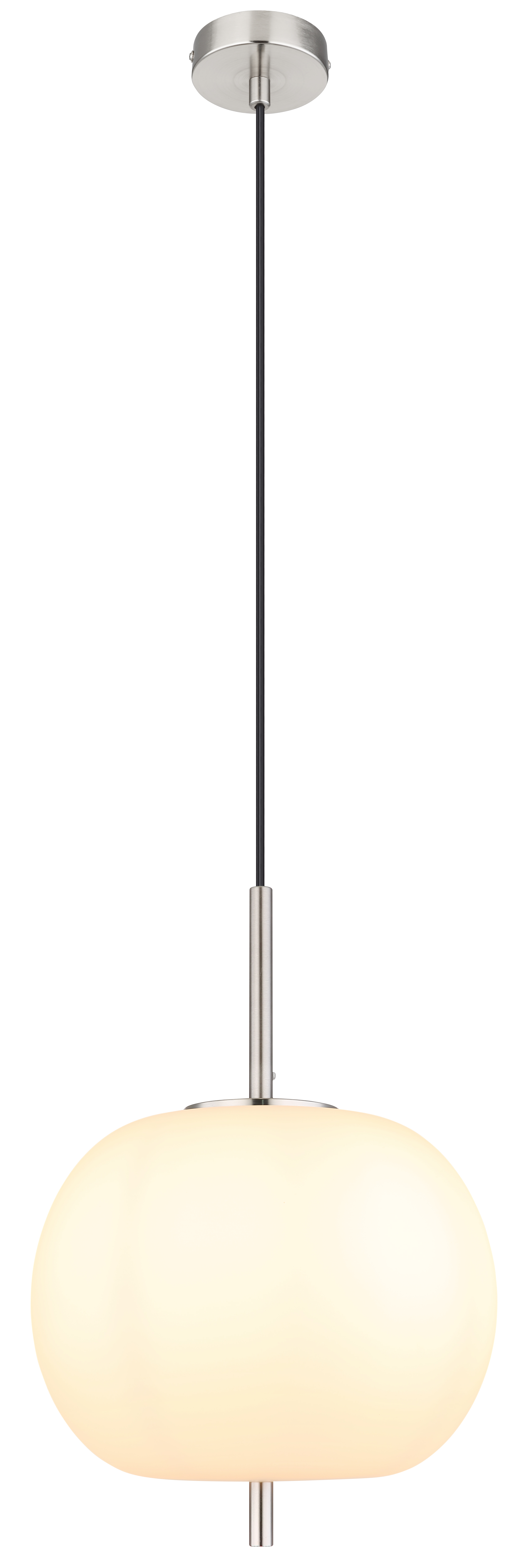 Questa grande lampada a sospensione della serie BLACKY I ispira con un design semplice. Un cavo lungo 1,2 m sporge da un attacco rotondo a soffitto color nichel (Ø 9 cm) e termina con una presa E27, dotata di un paralume opalino formoso (Ø 30 cm). La presa E27 consente di determinare autonomamente il colore della luce e la luminosità fino a una potenza massima di 60 watt. A causa della longevità e del risparmio energetico, consigliamo le lampadine a LED.