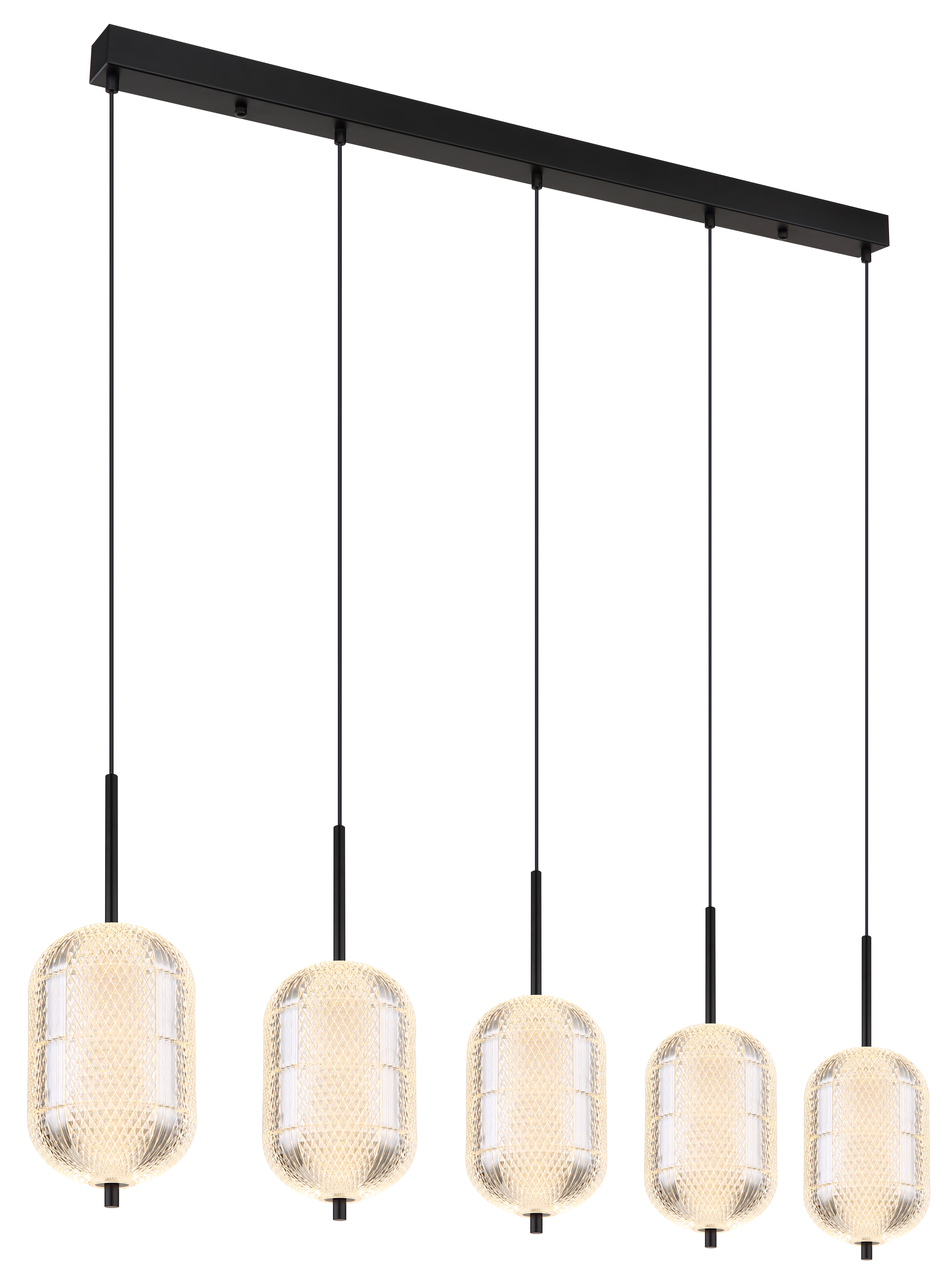 Una splendida lampada a sospensione che aggiungerà una calda atmosfera alla tua stanza. La lampada è realizzata in metallo nero opaco e acrilico trasparente che emette luce soffusa. Con una lunghezza di 1180 mm, una larghezza di 150 mm e un'altezza di 1200 mm, questa lampada a sospensione è un vero e proprio colpo d'occhio in ogni stanza. Si prega di notare che l'apparecchio viene fornito escludendo 1x LED 80W 230V, che ha un'intensità luminosa di 8000lm sorgente e una temperatura di colore di 4400lm di uscita.