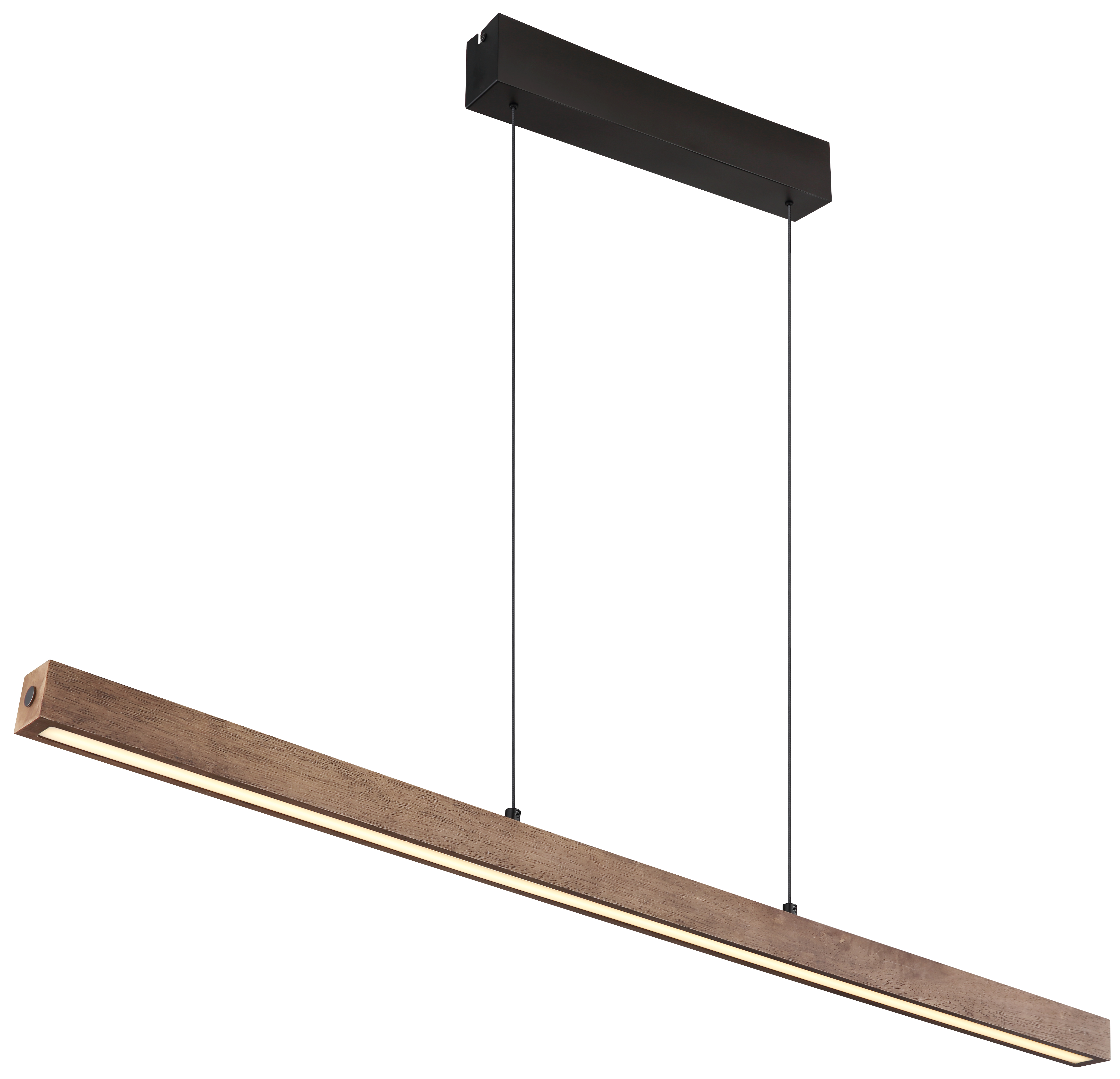 Resistente ed elegante in una forma elegante e allungata, la lampada a sospensione combina il metallo nero con il legno marrone scuro e la plastica opalina per un design moderno. Questa lampada a sospensione è dotata di un paranco a rulli per regolare la luminosità secondo necessità. Con un dimmer tattile a regolazione continua e la possibilità di fissare il colore della luce, offre una soluzione di illuminazione individuale. La lampada a sospensione ha una lunghezza di 1150 mm e una larghezza di 45 mm e produce un'impressionante emissione luminosa di 2040 lumen con un colore di luce bianco caldo di 3000K con una potenza di 24W. Inoltre, emette luce verso l'alto, creando un effetto particolarmente atmosferico. La funzione di memoria integrata assicura che le impostazioni preferite vengano salvate. Illumina il tuo spazio con questa lampada a sospensione elegante e funzionale per un'atmosfera piacevole.