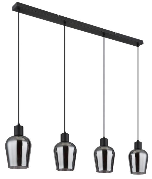 La lampada a sospensione allungata in nero opaco è una soluzione di illuminazione moderna ed elegante per la tua casa. Con un binario dritto e quattro vetri a bulbo con scanalature, crea un ambiente elegante in qualsiasi stanza. La lampada a sospensione ha quattro attacchi E27 e supporta una potenza massima di 40W ciascuna. Il corpo in metallo nero opaco conferisce alla lampada stabilità e durata. I vetri color fumo creano una piacevole atmosfera luminosa e creano un'atmosfera accogliente. Con una lunghezza di 980 mm e una larghezza di 135 mm, la lampada a sospensione è perfetta per illuminare tavoli da pranzo, isole cucina o altre zone giorno. Metti accenti di stile nella tua casa con questa lampada a sospensione e goditi un'illuminazione piacevole.