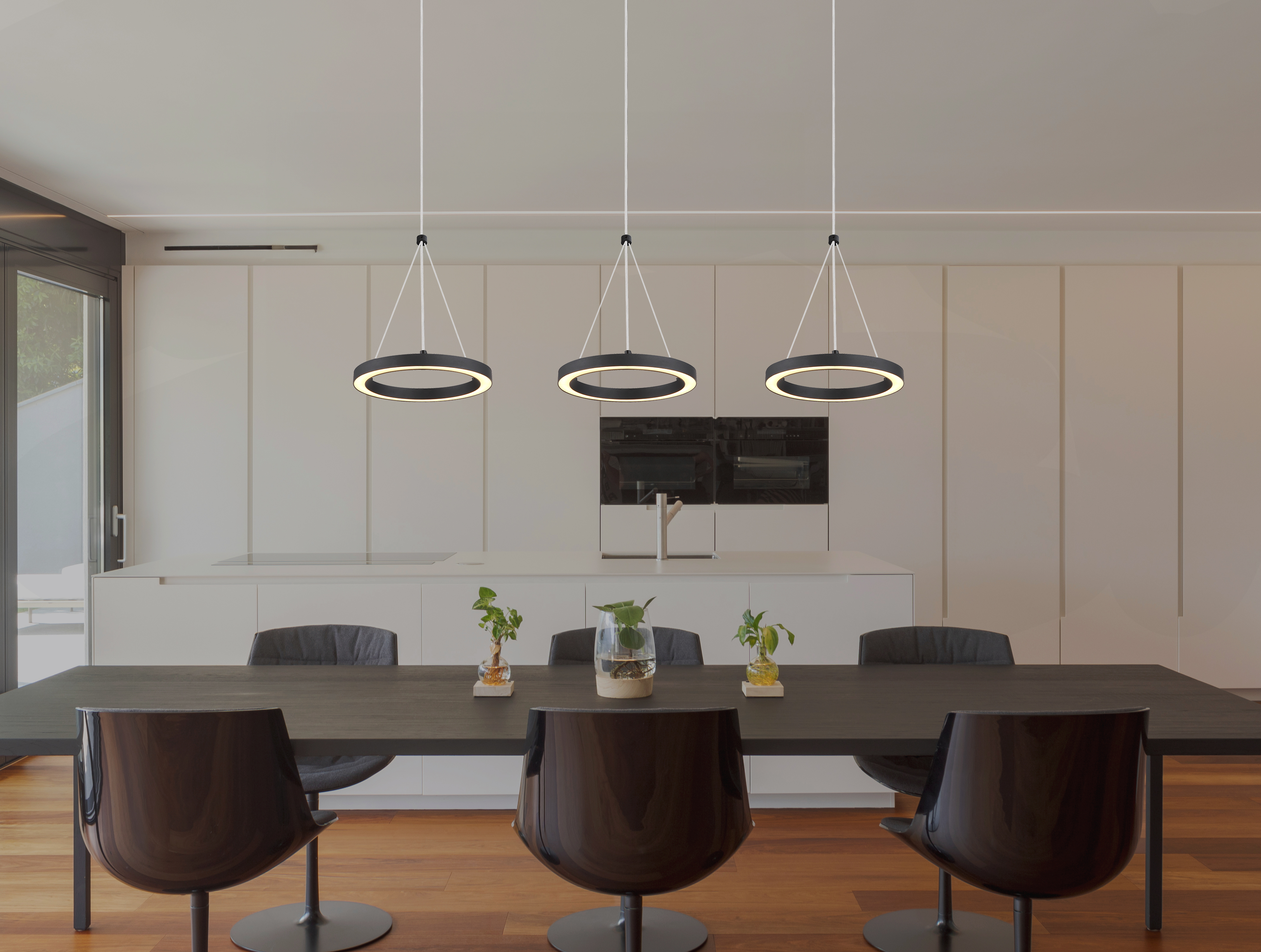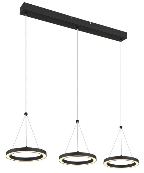 La GRENVIX METAL PENDANT LAMP BLACK MATT è un'esclusiva lampada a sospensione che si distingue per il suo design elegante e i tre ganci. La stecca è dritta e sostiene tre anelli che creano una forma lunga ed elegante. Il corpo è realizzato in metallo di colore nero opaco, mentre il paralume è realizzato in alluminio di colore nero opaco e plastica opalina. Questo effetto combinato crea un look moderno e pulito. La GRENVIX METAL PENDANT LAMP BLACK MATT ha una funzione di memoria che salva automaticamente la posizione. Con una potenza di 1430 lumen e una temperatura di colore di 3000K, offre una luce piacevole che può essere utilizzata sia nella vita personale che in quella lavorativa. La lampada a sospensione è un accessorio perfetto per qualsiasi decorazione che unisca design moderno e funzionalità.