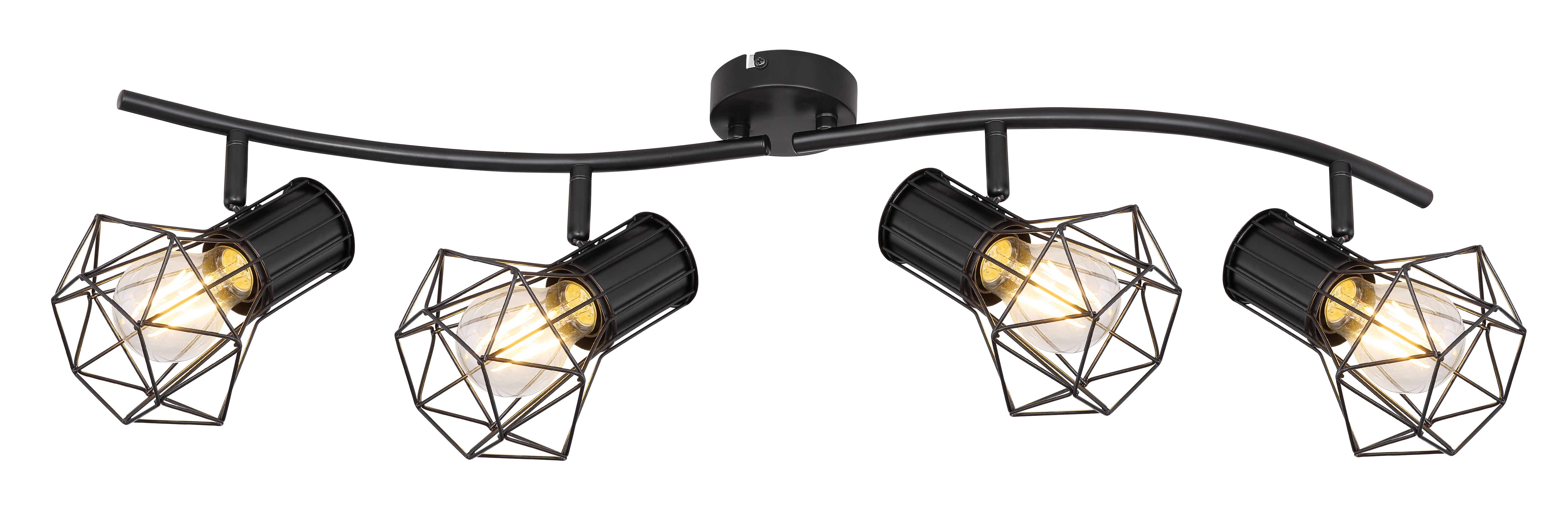 Il faretto da soffitto della serie Priska convince per il suo design elegante. I quattro schermi mobili in rete metallica nera a forma di diamante, fissati a due bracci, dovrebbero attirare lo sguardo di tutti. I faretti sono dotati ciascuno di una presa E27, che permette di scegliere la lampadina appropriata (max. 40W) e quindi di determinare il colore e l'intensità della luce. Per il loro risparmio energetico e la loro longevità consigliamo le lampadine a LED. Con altri faretti di questa serie si potrà completare il quadro in ogni stanza.