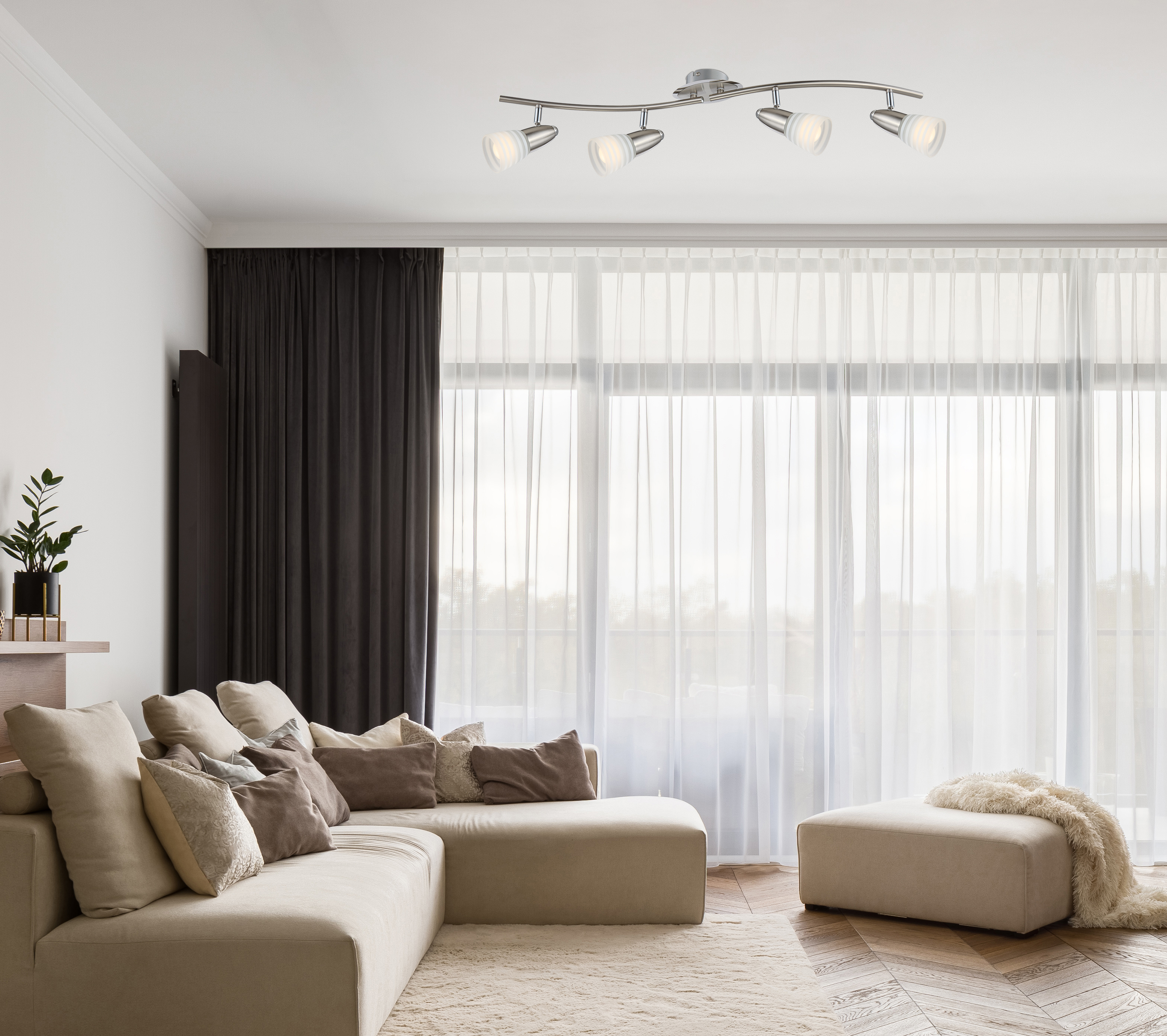 Un grande riflettore adatto ad ogni uso. Che si tratti di cucina, corridoio o soggiorno, questo faretto lungo 80 cm si adatta semplicemente ovunque. Attraverso i componenti nichel-cromatizzati opachi e il vetro opale satinato ottiene il suo speciale carisma. Gli spot mobili permettono ai 1600 lm e alla luce bianca calda di 3000K di illuminare perfettamente la stanza.