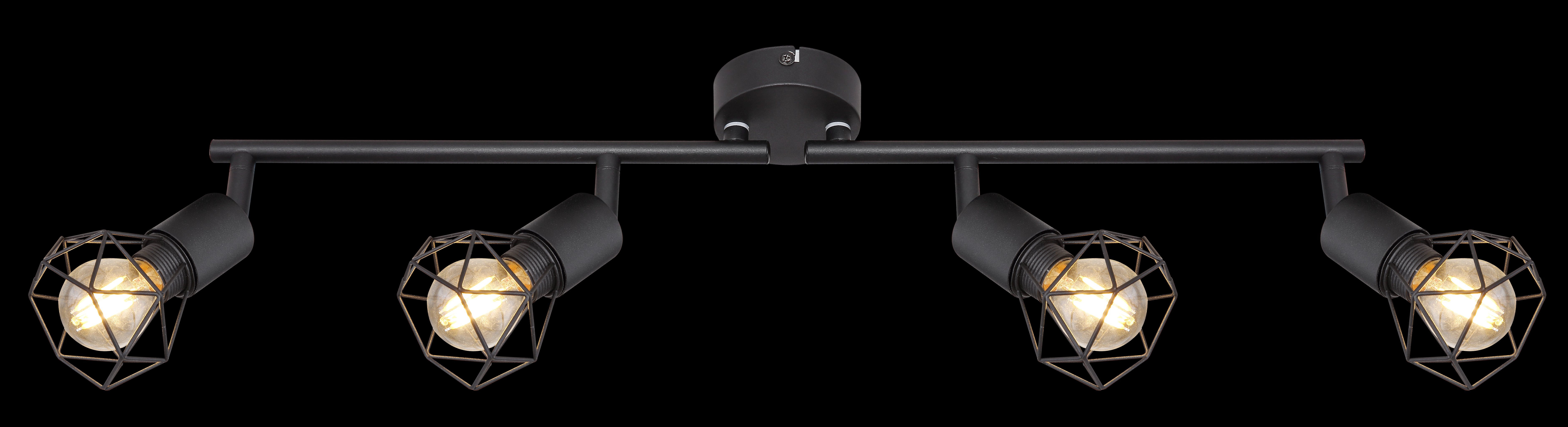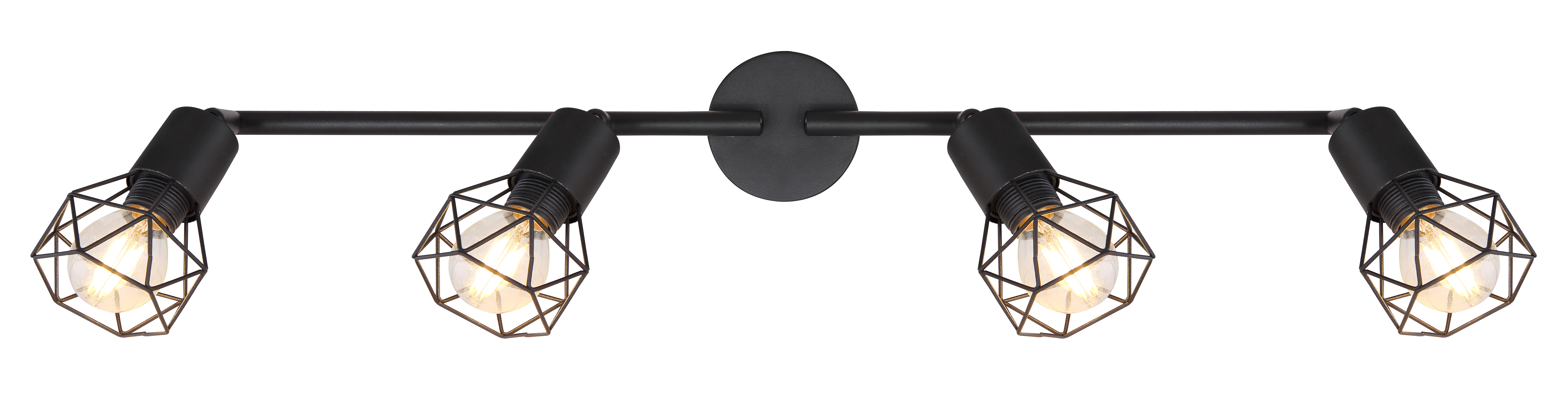 Il faretto da soffitto Xara I convince per il suo design elegante. Le quattro gabbie mobili in metallo a forma di diamante nero fissate a due bracci rigidi dovrebbero attirare lo sguardo di tutti. I faretti di questo faretto sono dotati ciascuno di una presa E14, che permette di scegliere la lampadina appropriata (max. 40W) e quindi di determinare il colore della luce e l'intensità luminosa. Per il loro risparmio energetico e la loro longevità consigliamo le lampadine a LED. Con altri faretti di questa serie si potrà completare il quadro in ogni stanza.