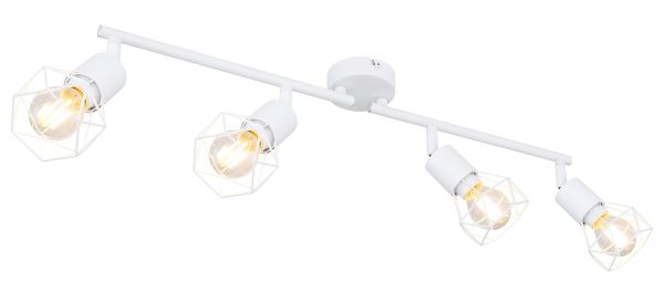 Il faretto da soffitto Xara I convince per il suo design elegante. Le quattro gabbie metalliche mobili bianche a forma di diamante, fissate a due bracci rigidi, dovrebbero attirare lo sguardo di tutti. I faretti di questo faretto sono dotati ciascuno di una presa E14, che permette di scegliere la lampadina appropriata (max. 40W) e quindi di determinare il colore della luce e l'intensità luminosa. Per il loro risparmio energetico e la loro longevità consigliamo le lampadine a LED. Con altri faretti di questa serie si potrà completare il quadro in ogni stanza.