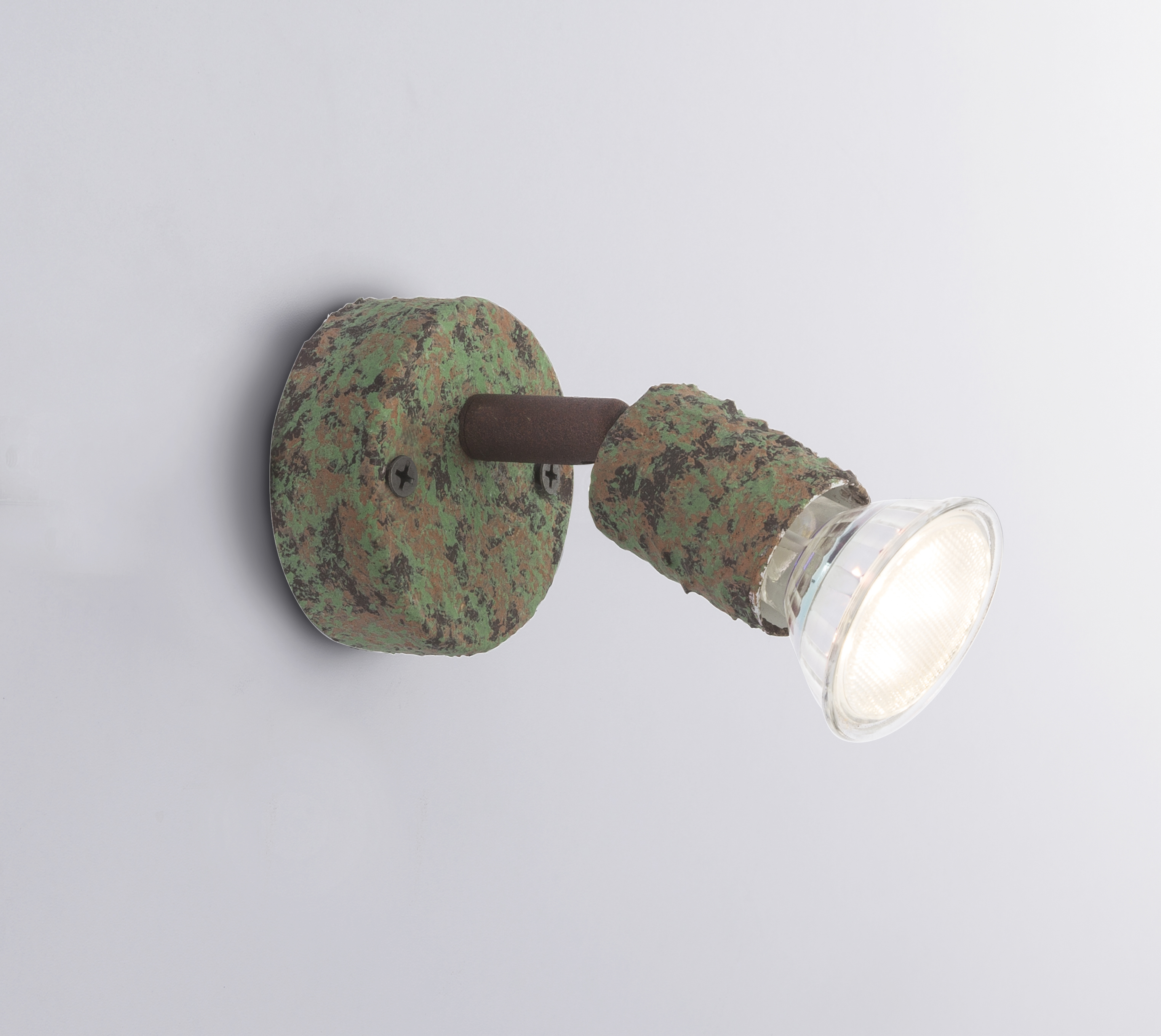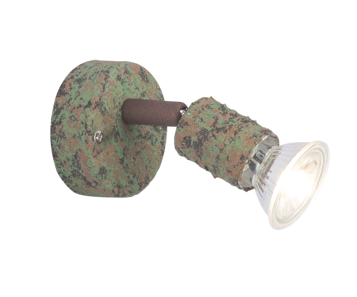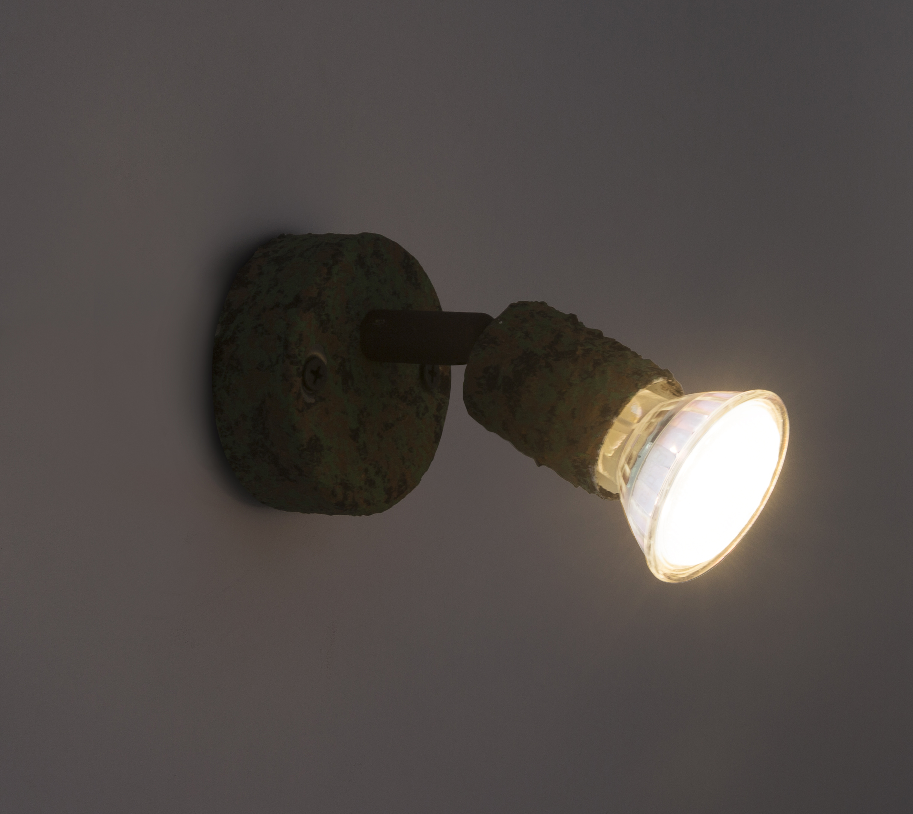 The wall spotlight of the Olana series clearly scores with its individual design. Made of rust-colored green metal, this wall lamp gives its premises a special touch. The movable spot, attached to a round wall shield, has a 3W GU10 LED bulb that provides 250 lumens of strong light with a pleasant 3000K warm white light color. With other spotlights of the same model series you can complete the picture in your premises.