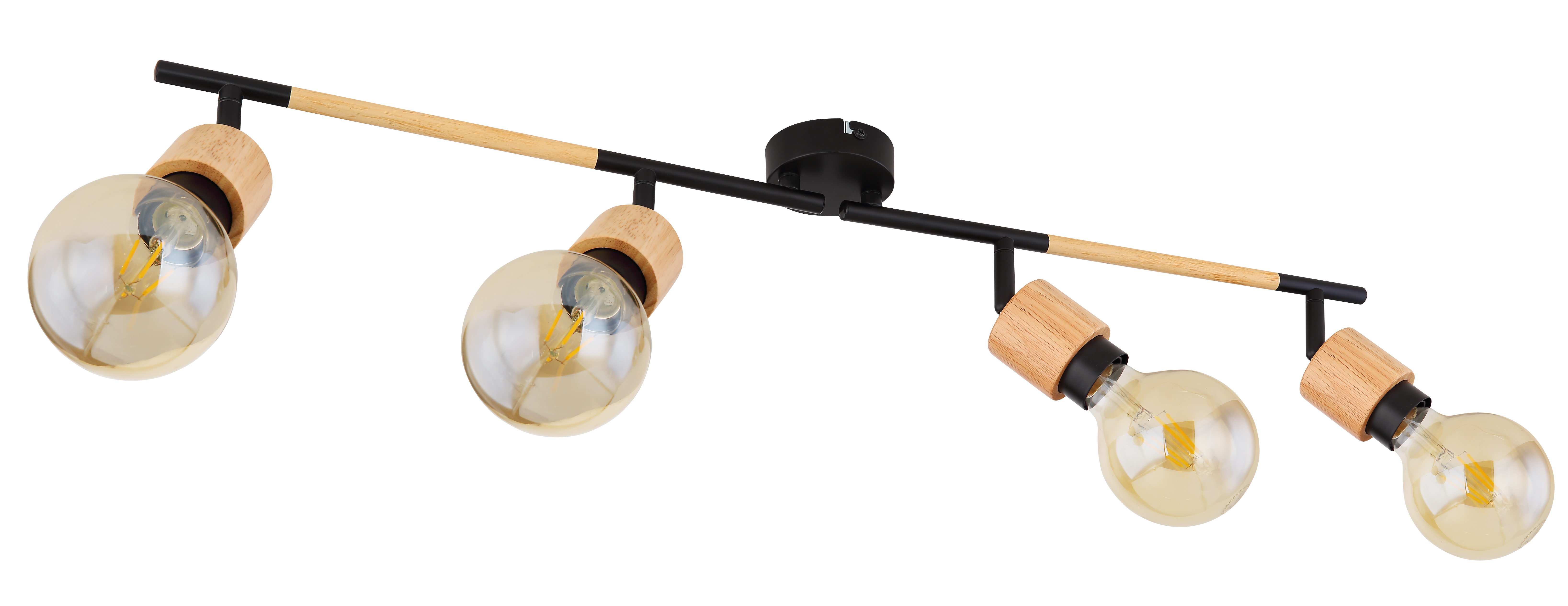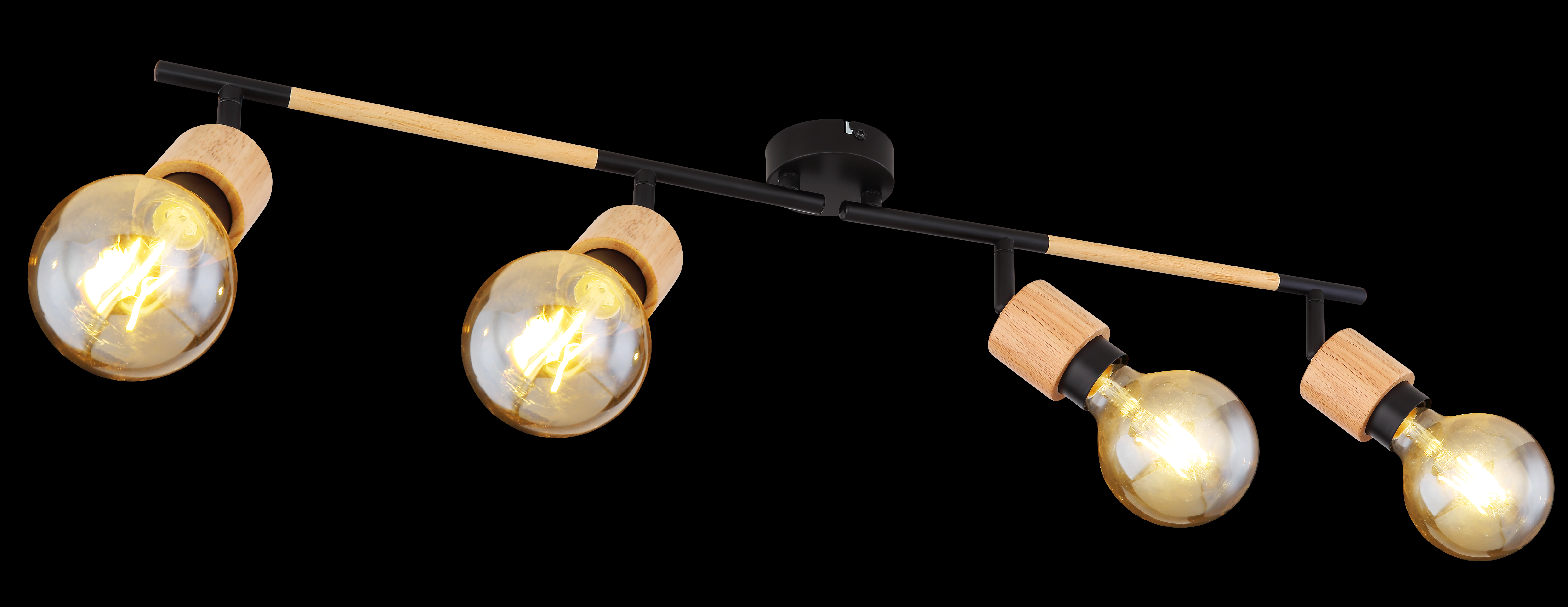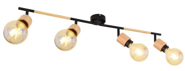 Questo faretto da soffitto della serie Jorna colpisce per il suo bel design in legno e metallo nero opaco. Grazie alla sua forma allungata, il faretto lungo 80 cm può essere meravigliosamente montato sopra un tavolo, che quindi sperimenta un'illuminazione uniforme. Il faretto può essere equipaggiato con quattro lampadine E27 di propria preferenza, il che dà la possibilità di determinare il colore della luce e la luminosità secondo i propri desideri. Con diversi articoli della serie Jorna, si può completare il quadro generale all'interno delle stanze e creare un ambiente elegante.