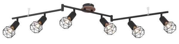 Questo faretto da soffitto della serie Xara I è meravigliosamente adatto alogni zona giorno. Il faretto lungo 116 cm è composto da tre aste di metallo nero, di cui quella centrale è fissata alla piastra rotonda di legno e le due esterne al soffitto. Inoltre, ha sei paralumi girevoli in rete metallica che possono essere dotati di lampadine E14 di propria scelta. Questo dà la possibilità di determinare il colore della luce e la luminosità secondo i propri desideri. Con altri modelli della stessa serie, si può completare il quadro generale all'interno dell'ambiente e creare un ambiente elegante.