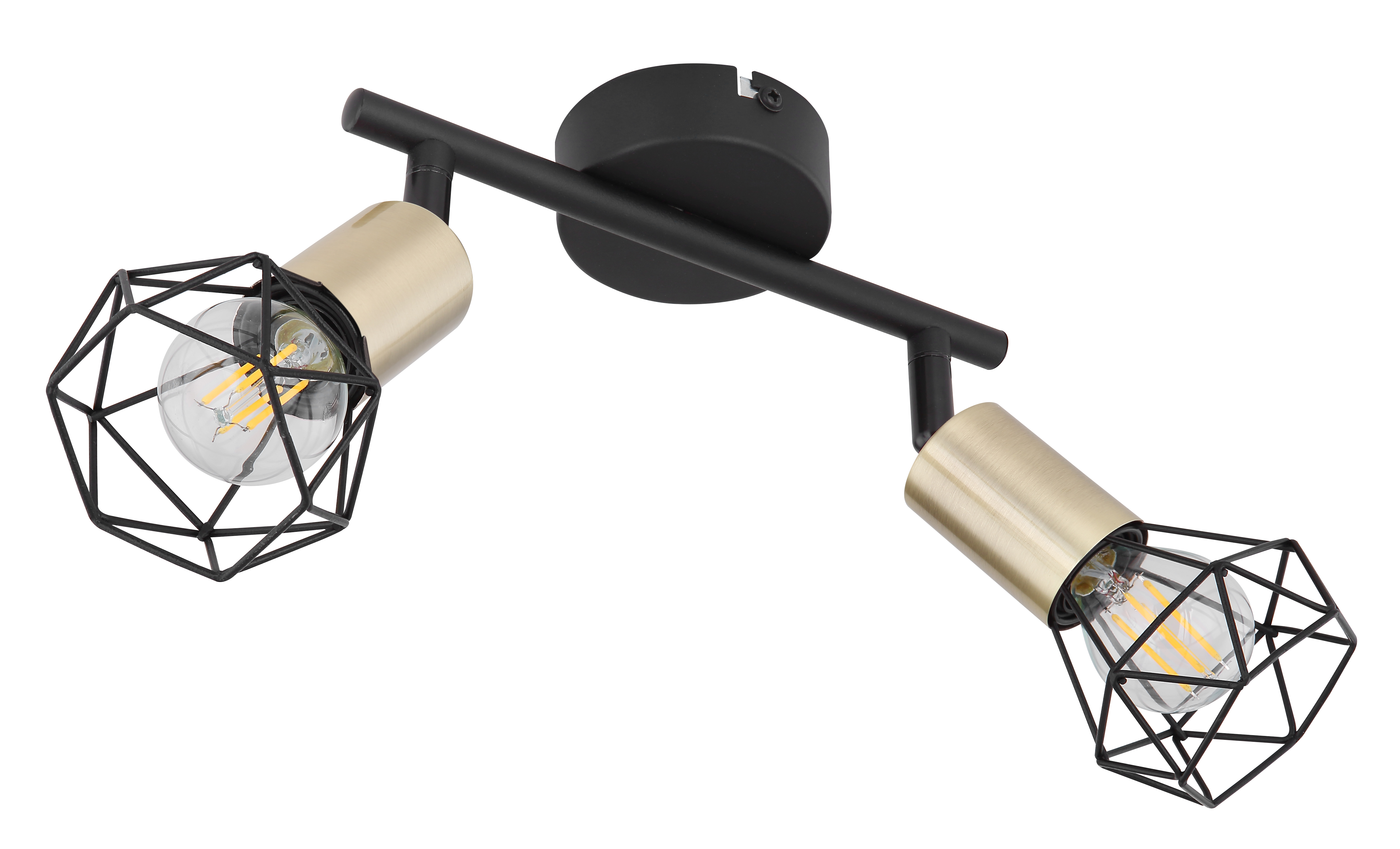 Questo faretto gemello della serie Xara I convince con il suo design semplice in metallo nero e ottone antico. Il faretto, lungo 22 cm, ha due prese E14 incorniciate in ottone antico, che sono dotate di un elegante paralume metallico a reticolo. È possibile equipaggiare ciascuna delle prese con una lampadina corrispondente di propria preferenza, dando la possibilità di determinare il colore della luce e la luminosità secondo le proprie preferenze. Con ulteriori articoli della stessa serie, si può completare il quadro generale all'interno delle proprie pareti e creare una bella atmosfera.