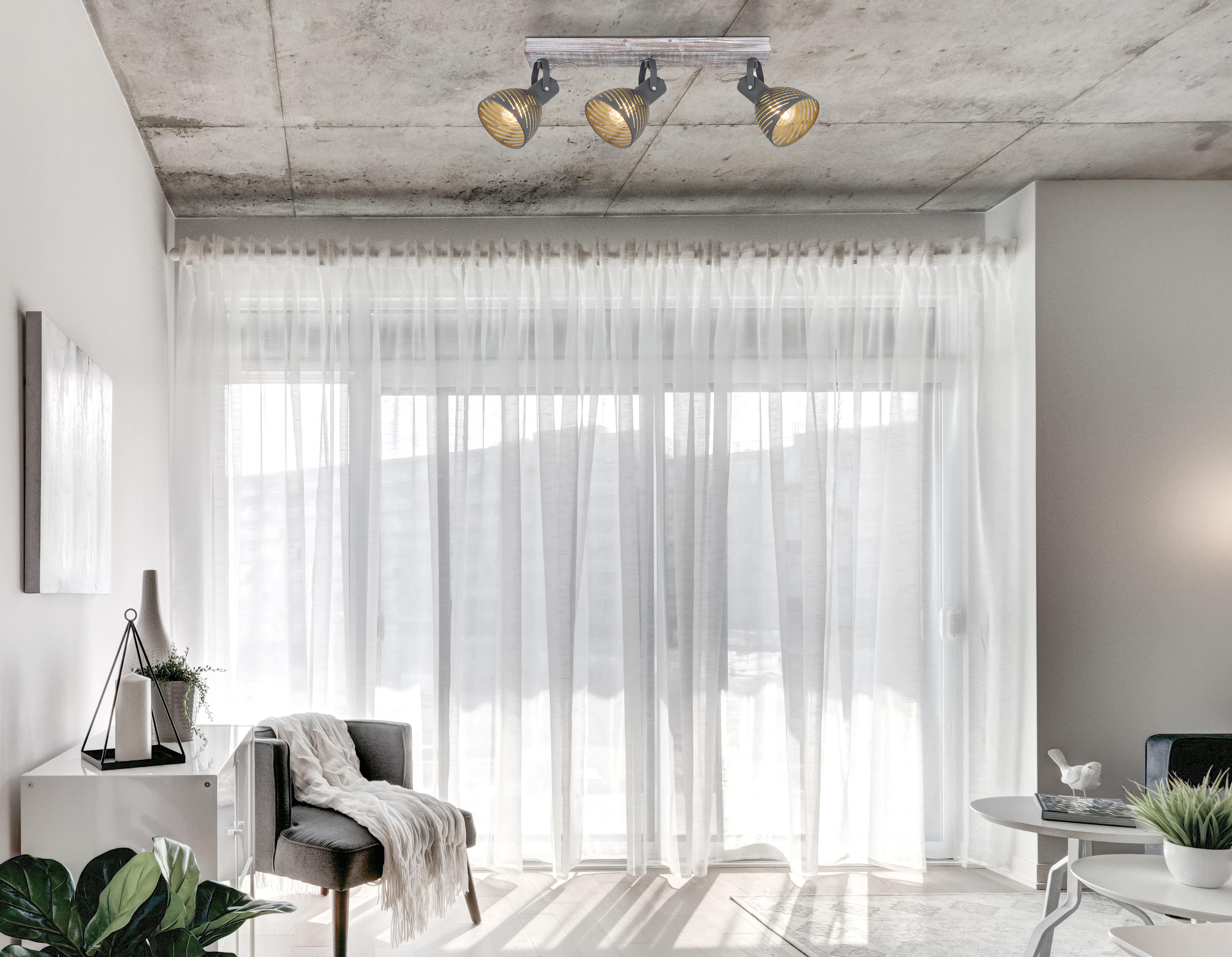 Questo faretto da soffitto della serie Mori (54x12,5 cm) si adatta meravigliosamente all'ambiente di diversi stili di vita. Consiste in una trave di legno imbiancata, che è dotata di tre tonalità metalliche grigie girevoli con perforazioni lineari. Questi possono essere montati con lampadine E27 di propria preferenza, dando la possibilità di determinare individualmente il colore della luce e la luminosità. Con altri modelli della stessa serie, si può completare il quadro generale nelle proprie stanze.