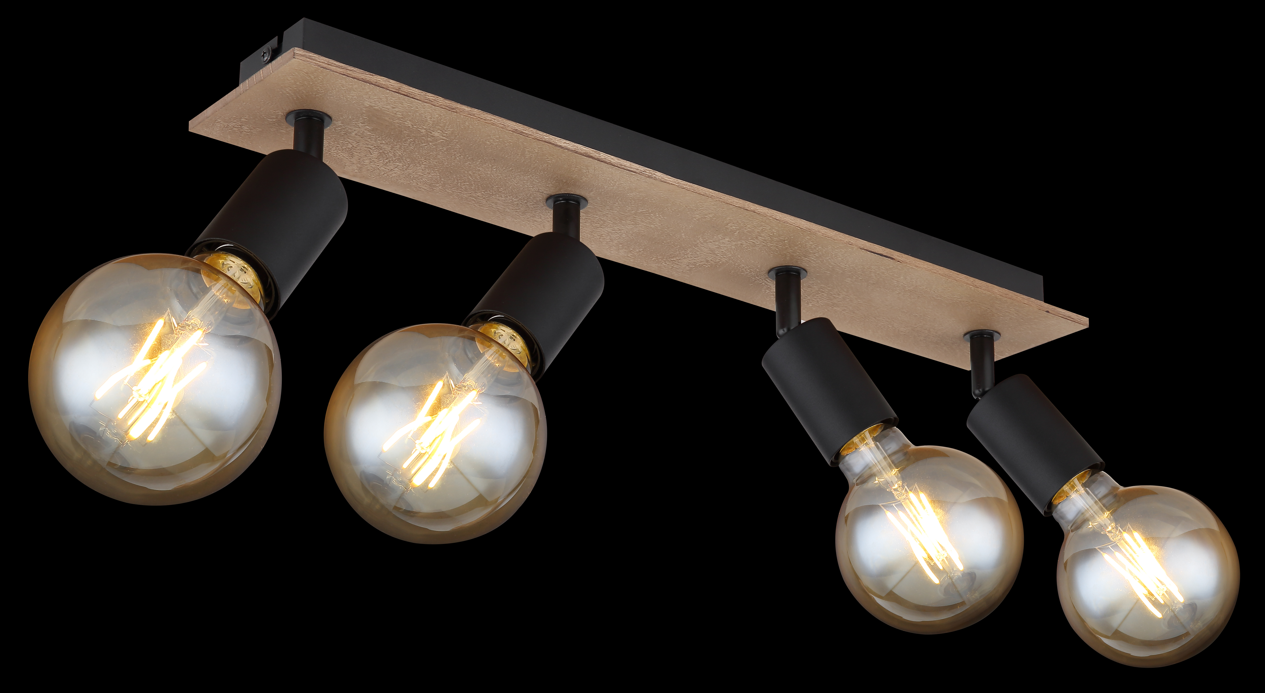Questo faretto da soffitto della serie Martha (49x9 cm) è un'elegante aggiunta ad ogni ambiente interno. Consiste in una piastra di legno marrone su cui sono fissate quattro prese E27 girevoli incassate nel metallo nero. si può equipaggiarli con lampadine di propria preferenza, il che permette di determinare il colore della luce e la luminosità secondo le proprie preferenze. Con altri modelli della stessa serie, si può completare il quadro generale nelle proprie stanze.
