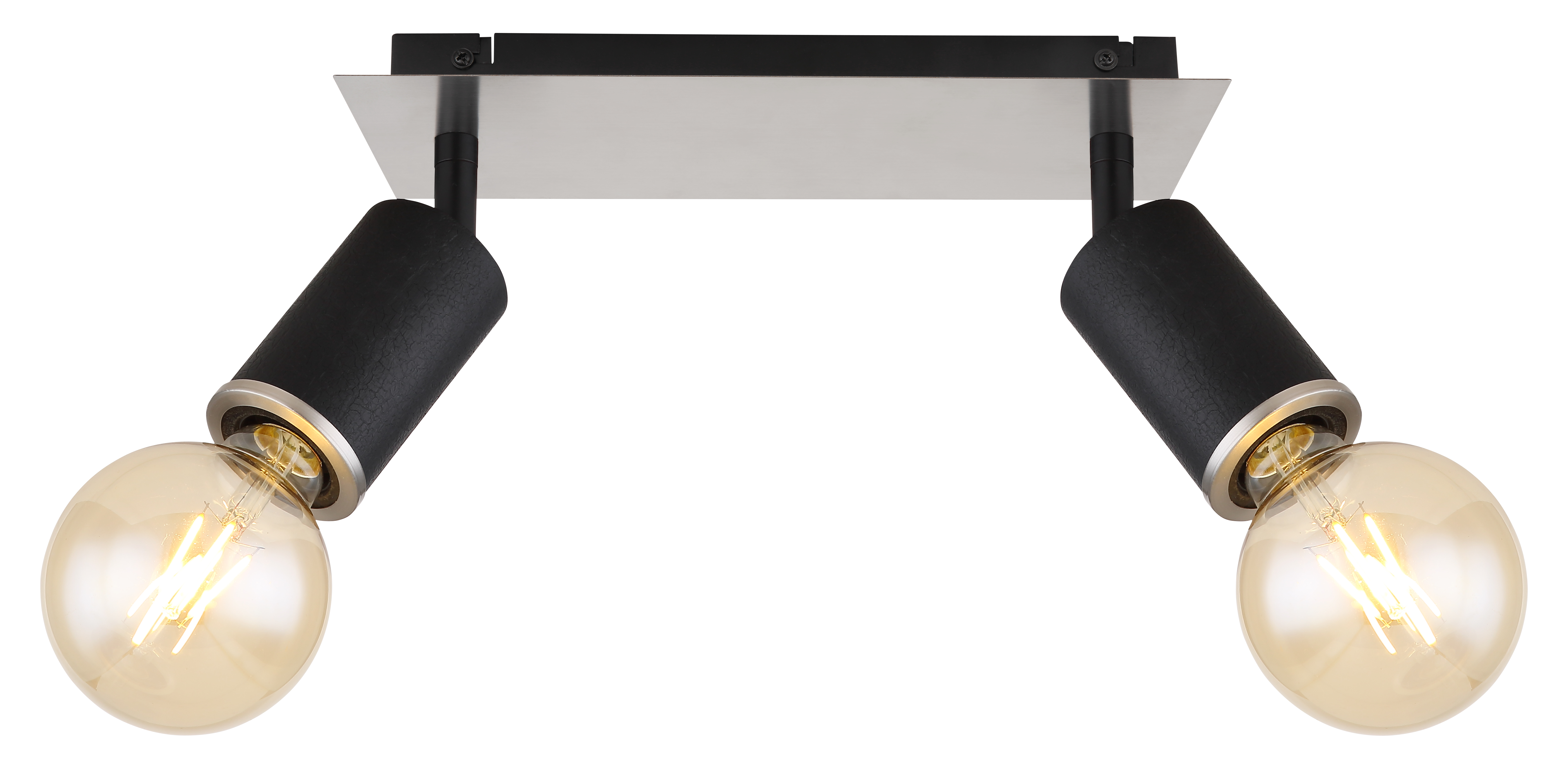 Questo faretto doppio della serie Joseba (31x10 cm) è un'elegante aggiunta a qualunque ambiente. Consiste in una piastra metallica nichel-opaca alla quale sono fissate due prese E27 incassate in legno nero e anello metallico nichel-opaco. È possibile montarli con fonti di luce adatte di propria scelta, dando a ciascuno la possibilità di determinare il colore della luce e la luminosità individualmente. Con altri modelli della stessa serie, si può creare un ambiente elegante nel proprio ambiente.