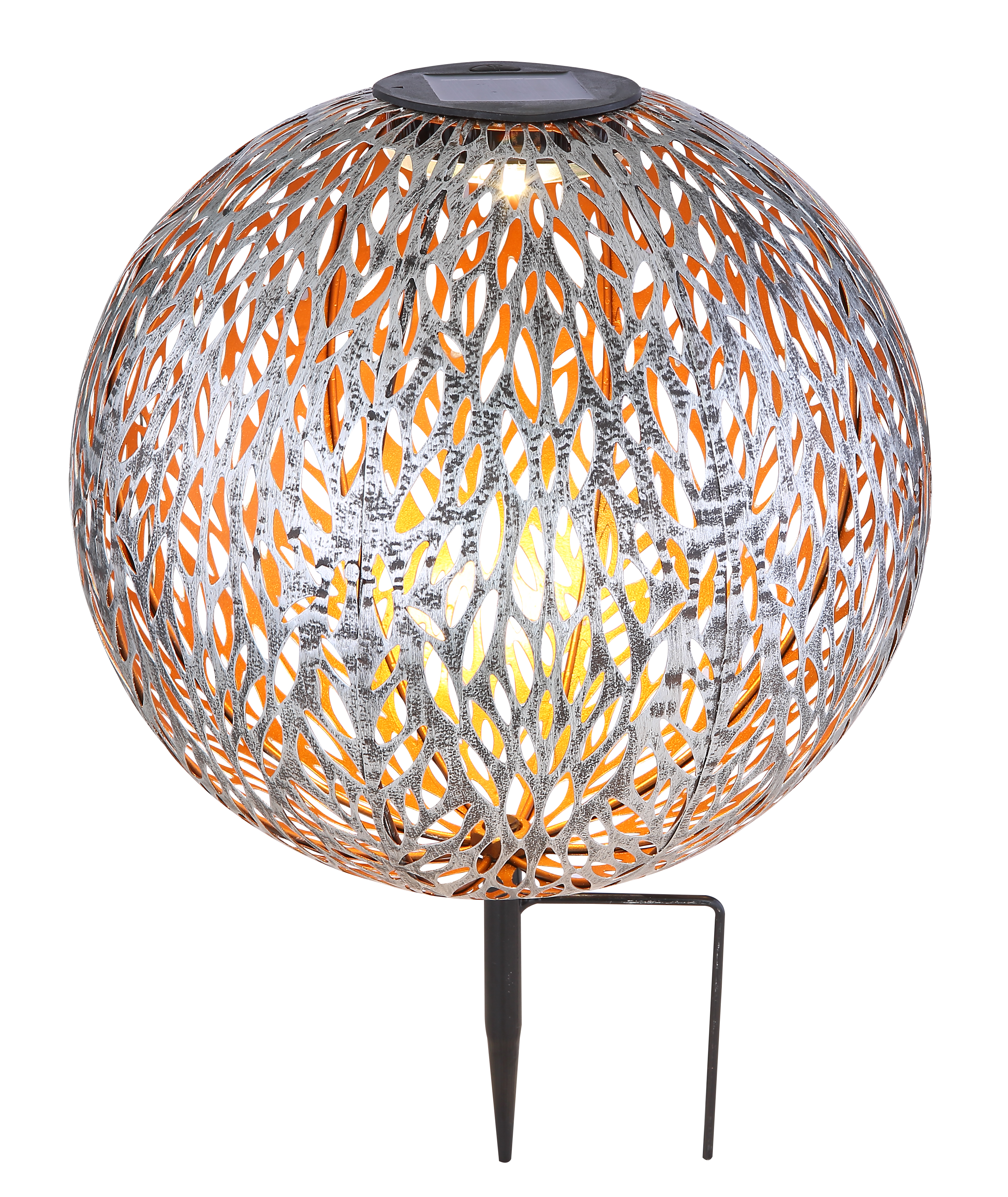 Si tratta di una lampada solare dall'aspetto rustico. La lampadina è circondata da una sfera di metallo stampato in grigio argento ed è una splendida aggiunta a qualsiasi casa. Grazie alla batteria integrata, il giardino o il balcone sono illuminati fino a 8 ore da questa lampada a LED per spiedini a energia solare e senza la fastidiosa posa di cavi. Inoltre, la lampada è resistente agli spruzzi d'acqua grazie al grado di protezione IP44 ed è quindi meravigliosamente adatta per l'uso all'aperto.
