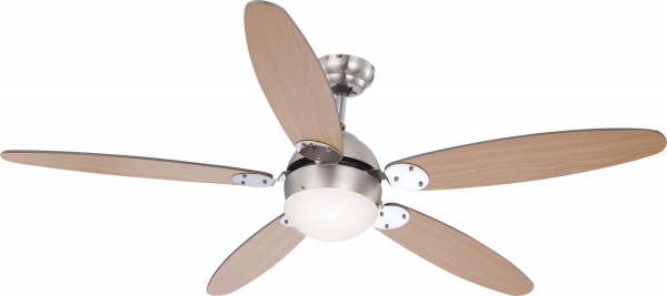 Con le sue pale reversibili color grafite e faggio, questo bellissimo ventilatore da soffitto si armonizza con una varietà di stili interni. Ha anche molte funzioni: controllo della velocità e della potenza in 3 fasi, interruttore a catenella e rotazione a destra e a sinistra. Ha un diametro di 132 cm e può essere installato su tetti inclinati se non si supera l'angolo di 30°. La potenza massima del motore è di 60W.