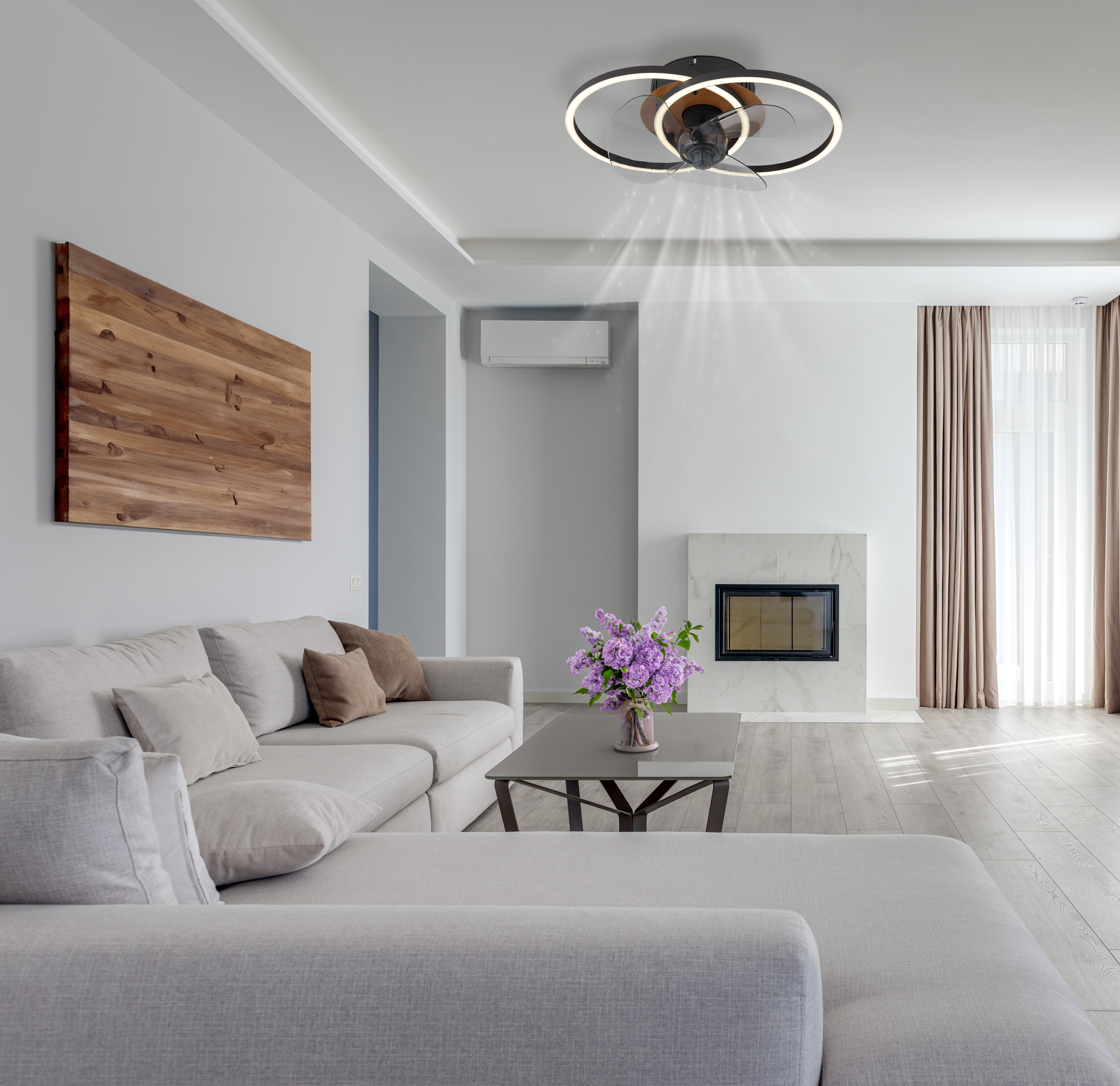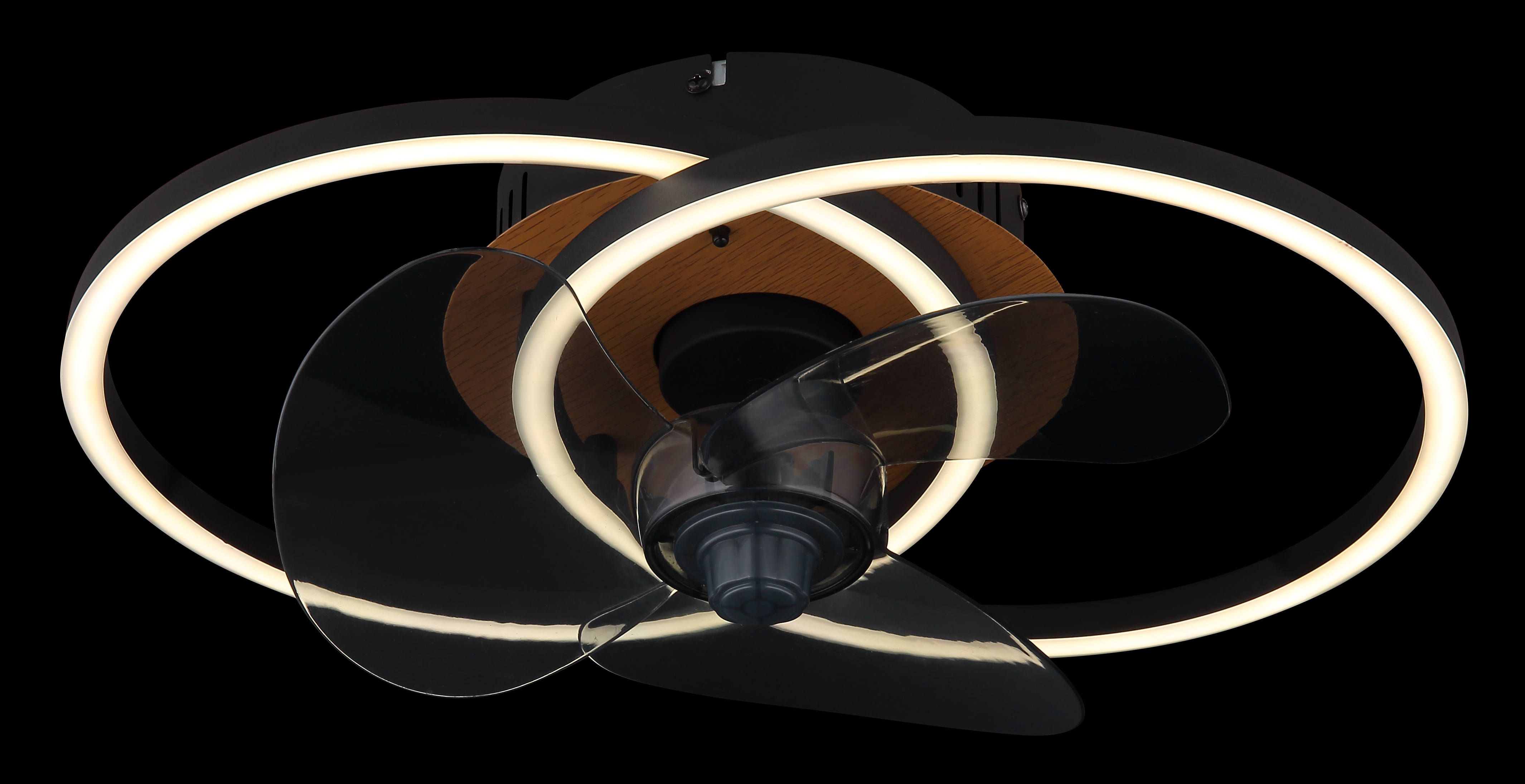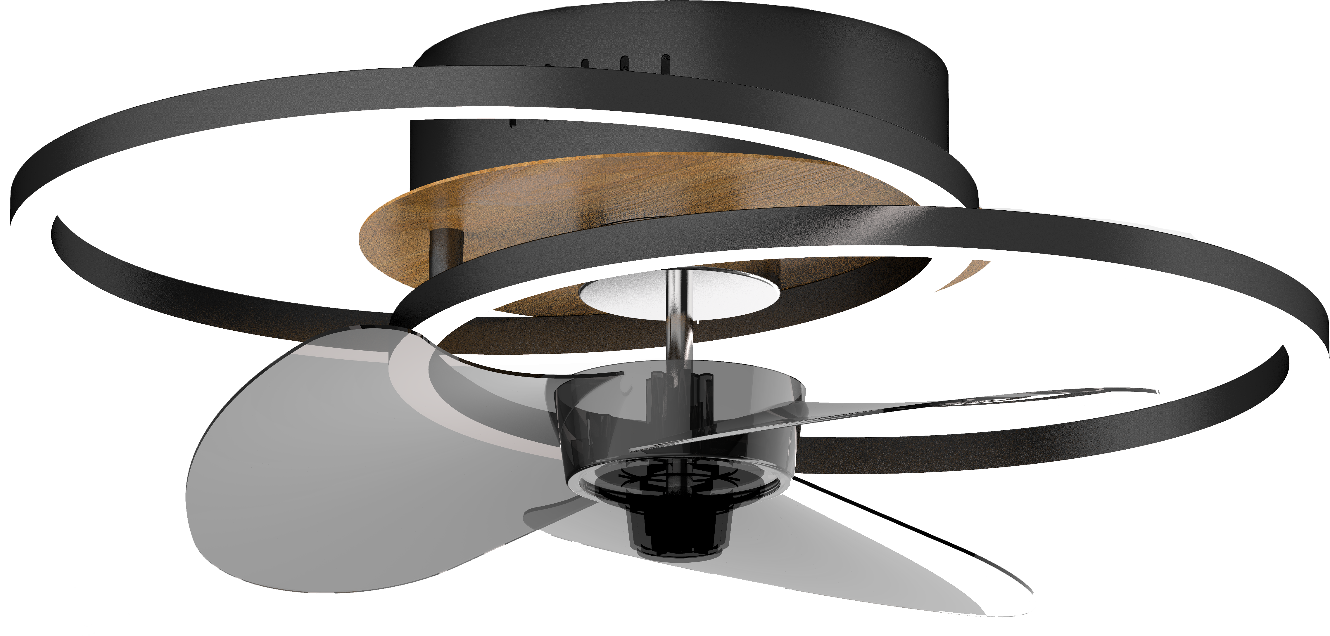 Il ventilatore da soffitto in metallo nero opaco, effetto legno scuro e effetto alluminio combina eleganza e funzionalità. Con alette in plastica opalina e ABS color fumo, garantisce una circolazione dell'aria e un raffreddamento ottimali in ogni stanza. Il ventilatore è dotato di un potente LED (24W, 230V) che fornisce un'emissione luminosa di 2400 e un colore della luce regolabile da 2700K a 6500K. Dimmerabile e regolabile con più livelli tramite l'interruttore a parete, i colori possono essere fissati e salvati utilizzando la funzione di memoria. Un timer e un telecomando con batterie (2x AAA) consentono un comodo controllo. La potenza massima del motore è di 15W. Con dimensioni di 420x280x144 mm e un diametro della pala di 28 cm, questo ventilatore da soffitto si adatta perfettamente a qualsiasi stanza.